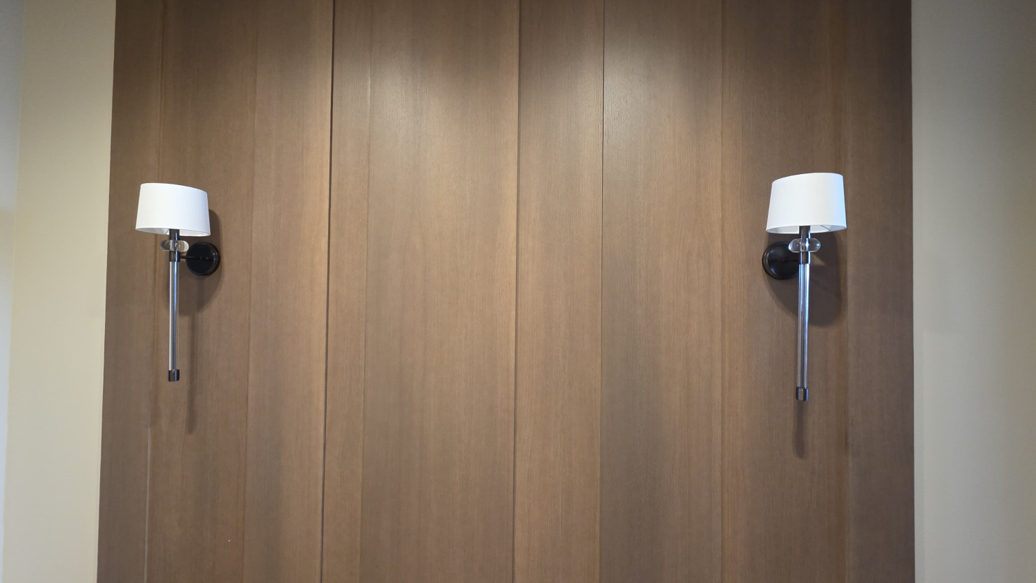 Очень стильные и аккуратные бра. На фоне деревянных стен смотрятся просто идеально — специально под интерьер подбирала. Свет мягкий, уютный, хорошо подсвечивает и не даёт резких теней.