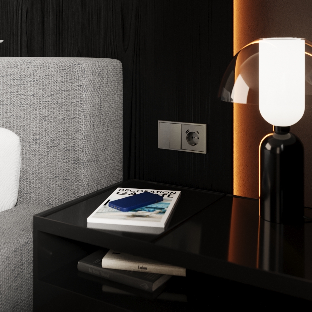 Выключатель двухклавишный с подсветкой Voltum S70 VLS020207 (графит)