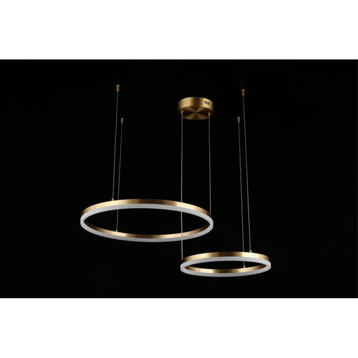 Подвесная люстра Aployt Armel APL.049.03.60 создана для тех, кто любит чистые линии и аккуратный современный акцент. Два кольцевых плафона из металла в благородном золоте образуют легкую геометрию, а мягкое нейтральное свечение 4000 К делает комнату уютной и собранной. Модель относится к коллекции Armel бренда Aployt, узнаваемой вниманием к деталям и продуманной эстетикой для городских интерьеров.