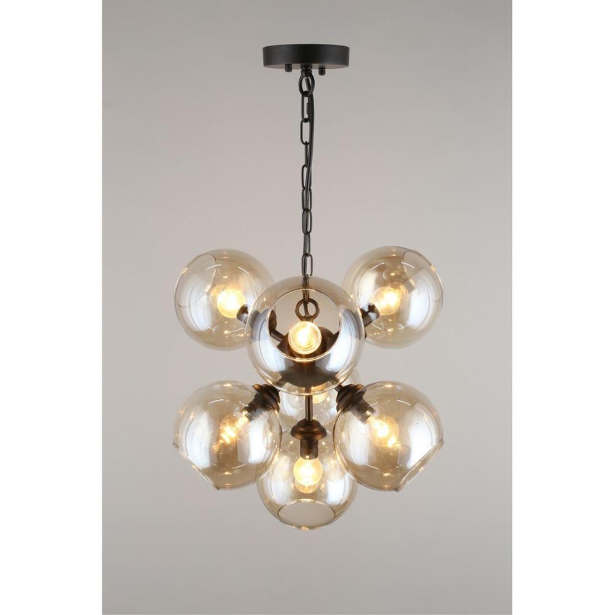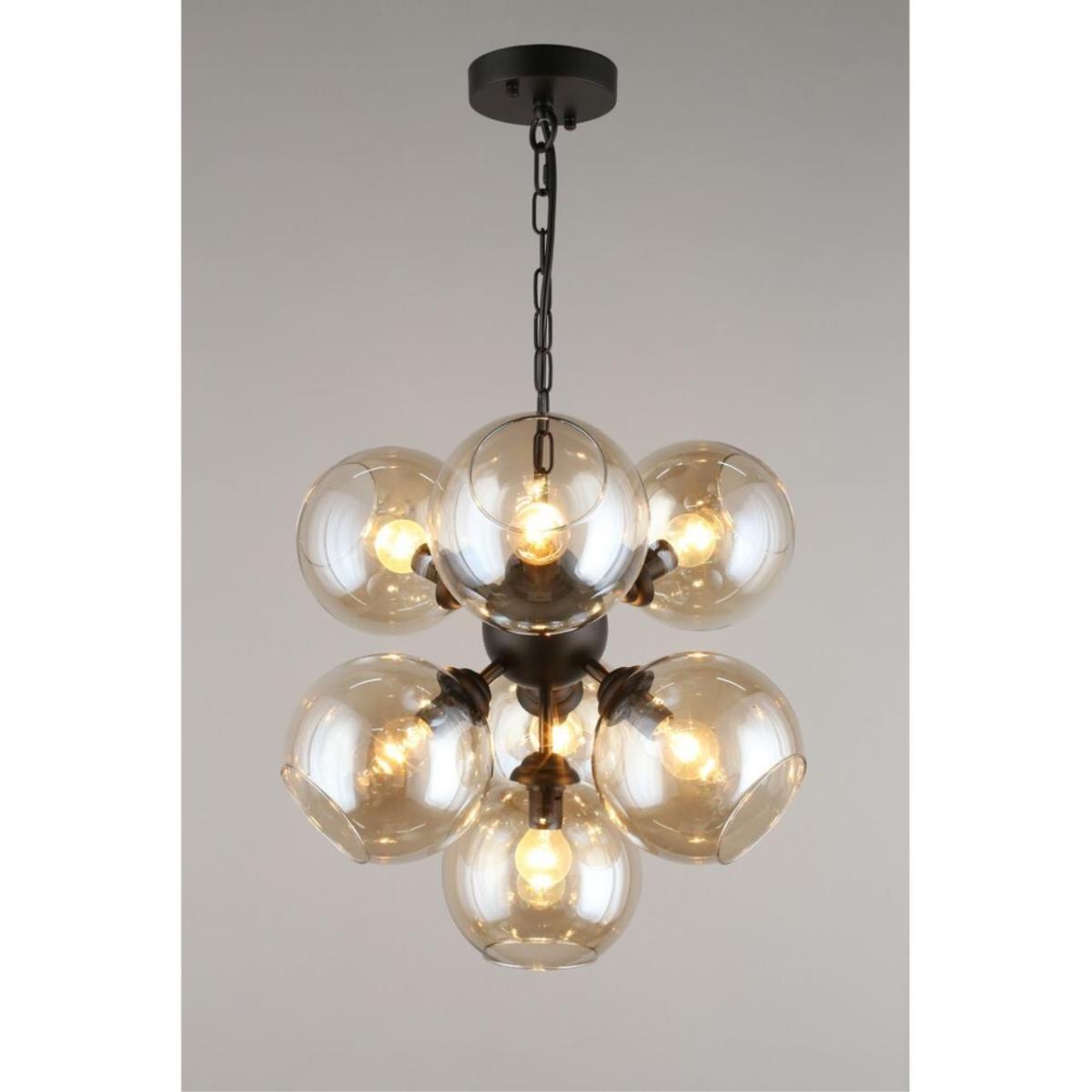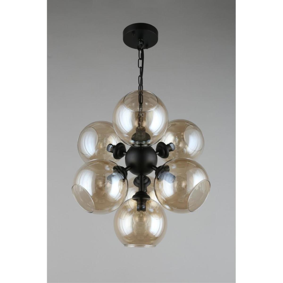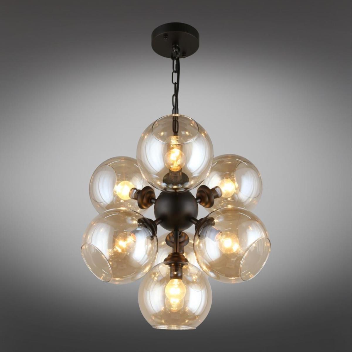 Подвесная люстра Aployt Greta APL.912.03.07 создана для современных интерьеров, где важны чистые линии и мягкий свет. Семь дымчатых стеклянных шаров на черной металлической арматуре формируют уютную атмосферу и визуальный ритм в комнате.