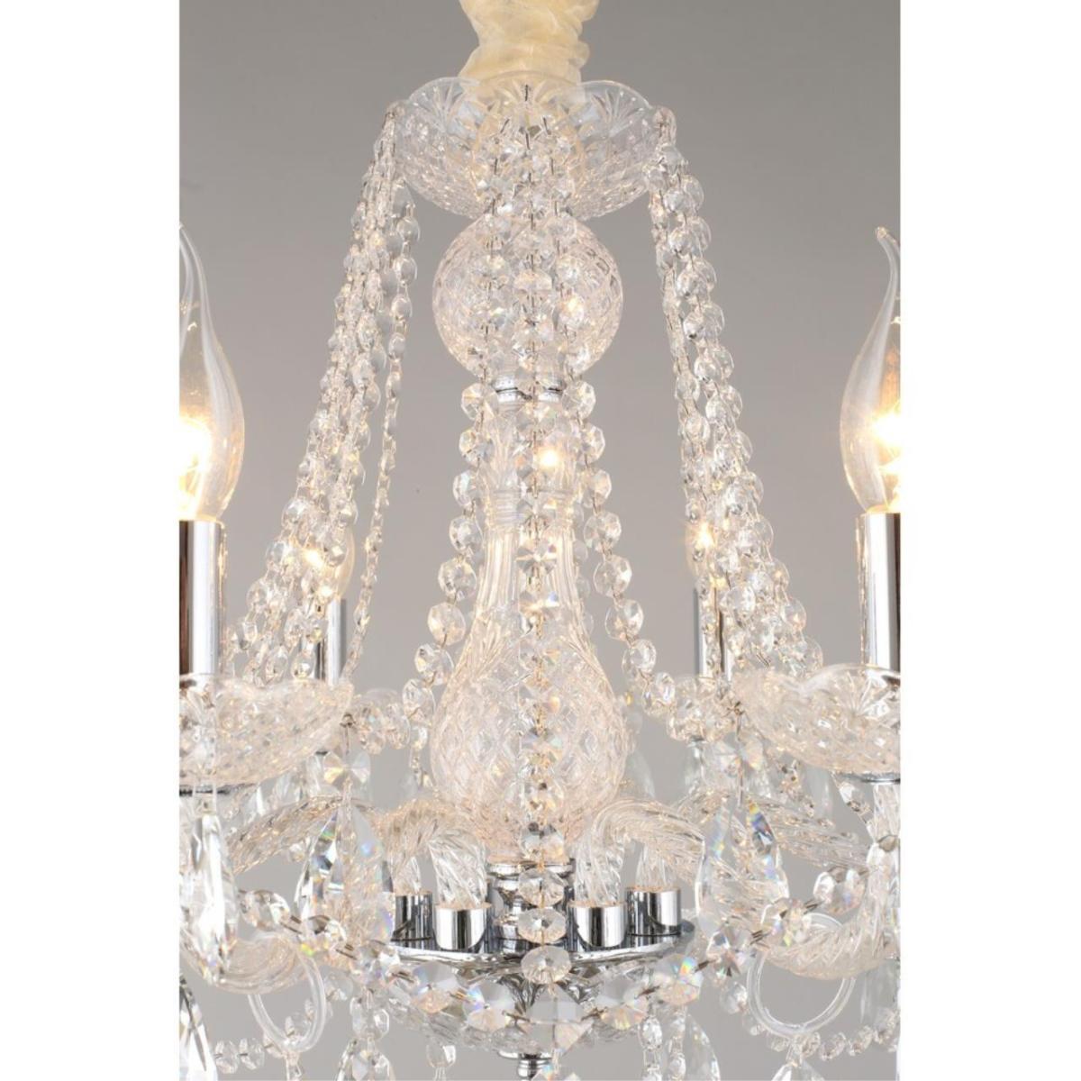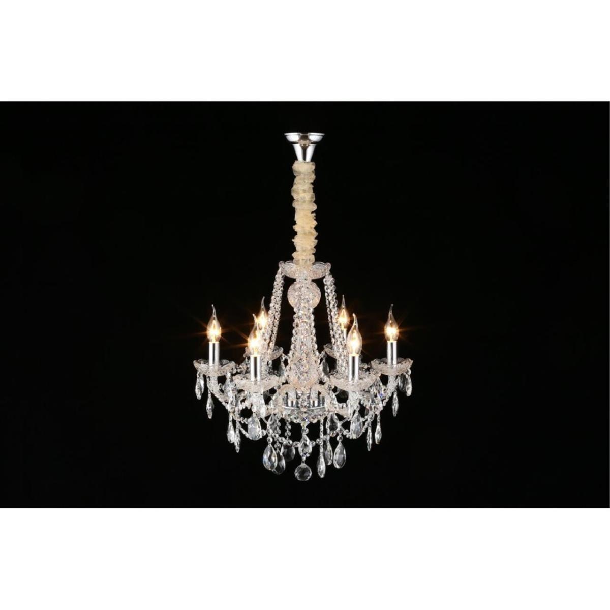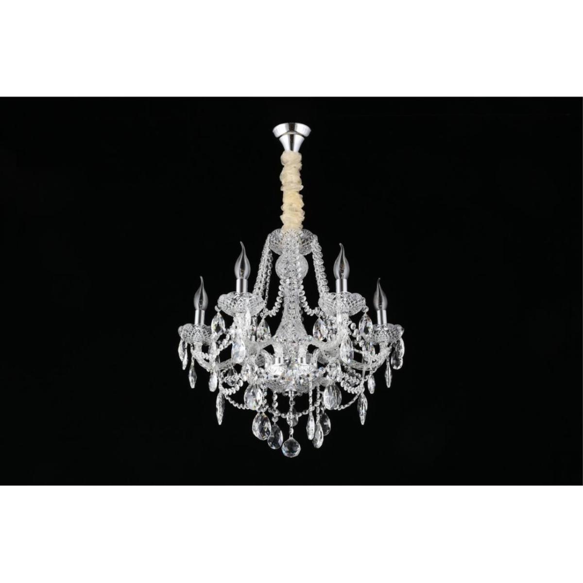 Подвесная люстра Aployt Koletta APL.755.03.06 подчеркивает классический интерьер чистыми линиями и блеском хрома. Шесть направленных вверх рожков создают выразительную композицию без плафонов, свет раскрывается мягко и равномерно в пространстве гостиной.