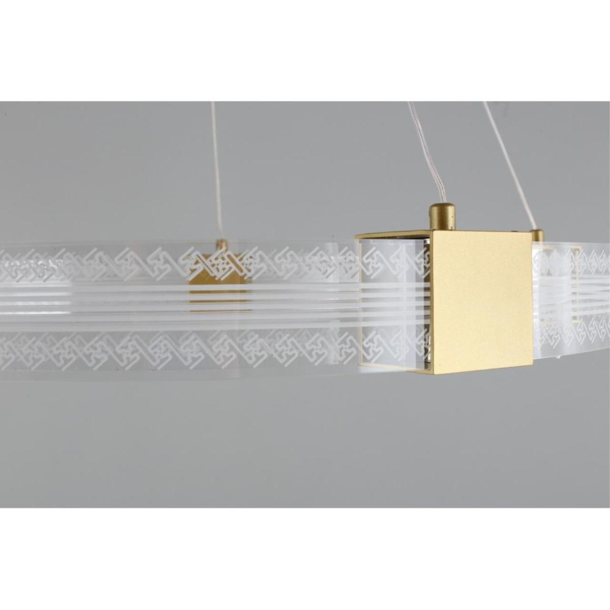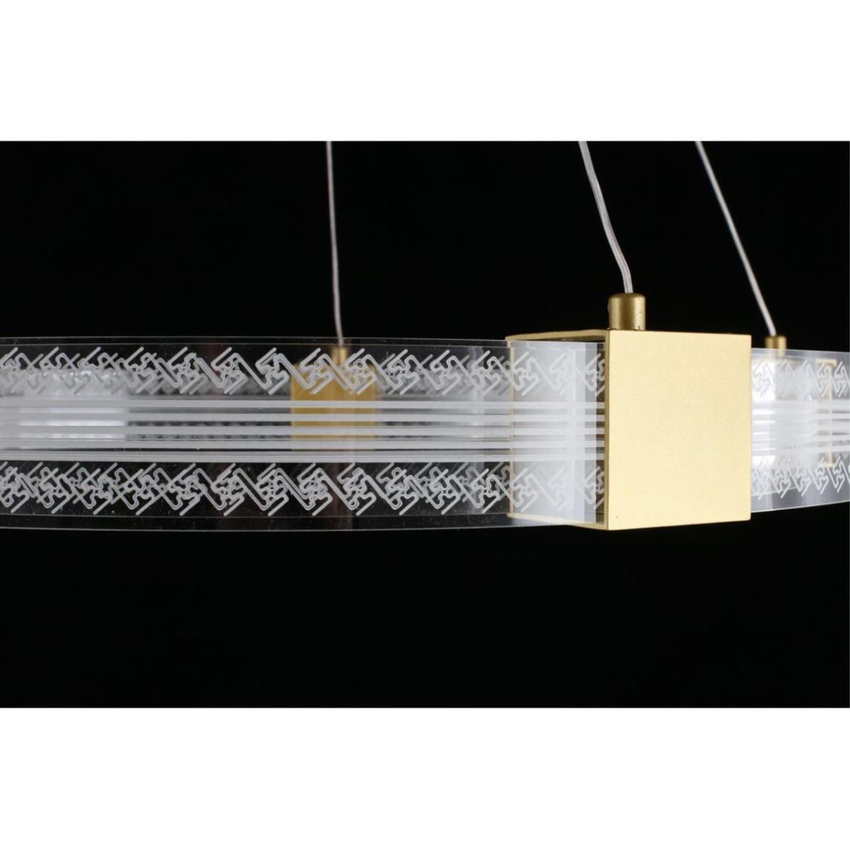 Модель из коллекции Misia ориентирована на жилые пространства, в том числе гостиную, где важны аккуратная геометрия и ровное освещение зоны под подвесом. Прозрачный акрил минимизирует визуальную массу плафона, золотистая арматура поддерживает современную отделку интерьера.