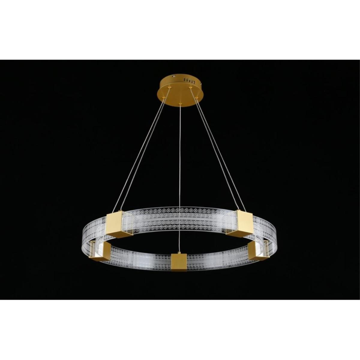 Подвесная люстра Aployt Misia APL.030.03.50 выполнена в стиле модерн из металла цвета золото и прозрачного акрила. Кольцевой плафон направлен вниз, конструкция лаконичная и аккуратная, подходит для повседневного освещения.