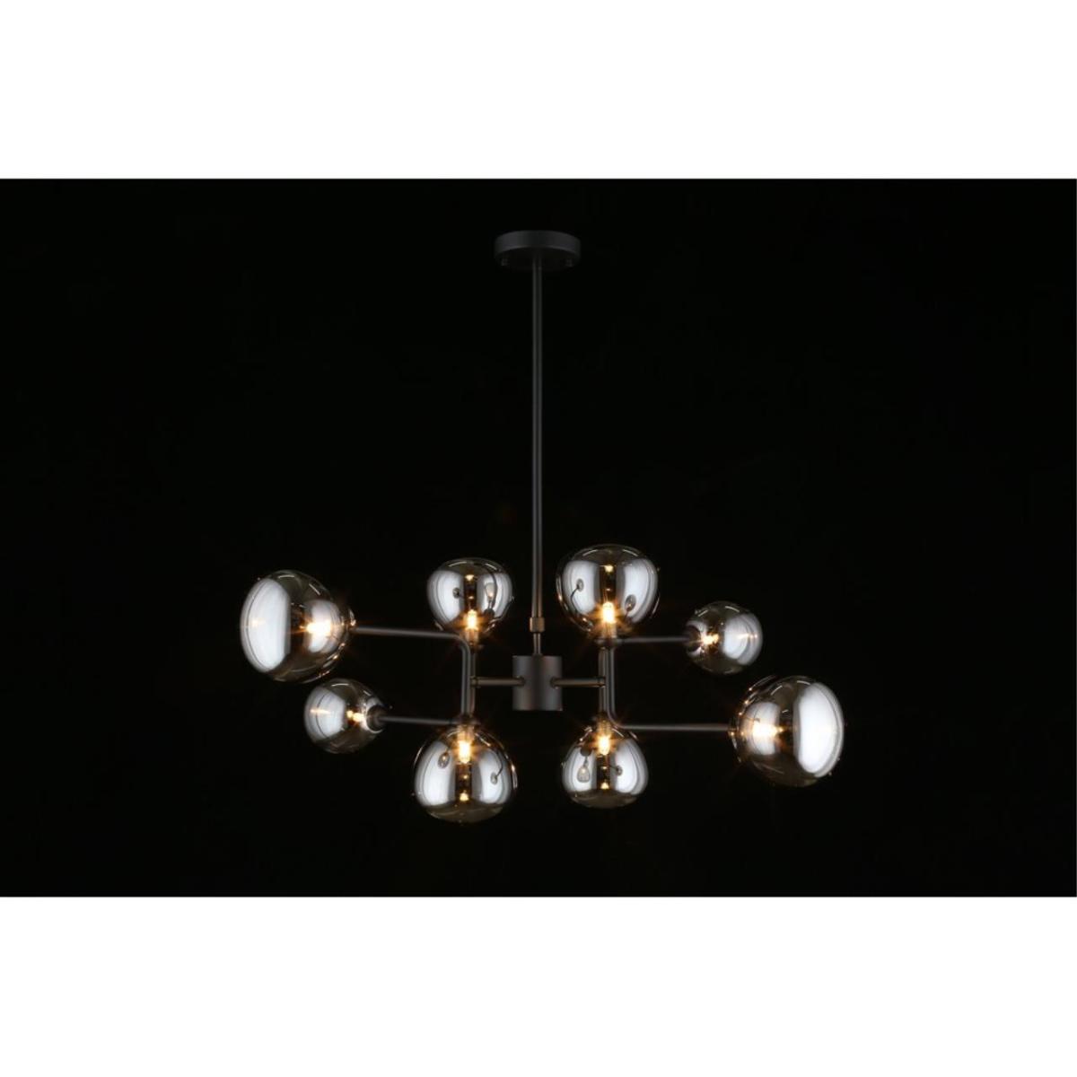 Источник света: 8 светодиодных ламп G9 по 5 Вт, суммарная мощность 40 Вт, питание 220 В. Лампы с цоколем G9 сменные, легко подобрать нужную яркость и оттенок света по задаче. IP20 подходит для сухих помещений, поэтому люстра уместна в гостиной или обеденной зоне. Крепление на потолок, конструкция на штанге держит форму и сохраняет аккуратную геометрию.