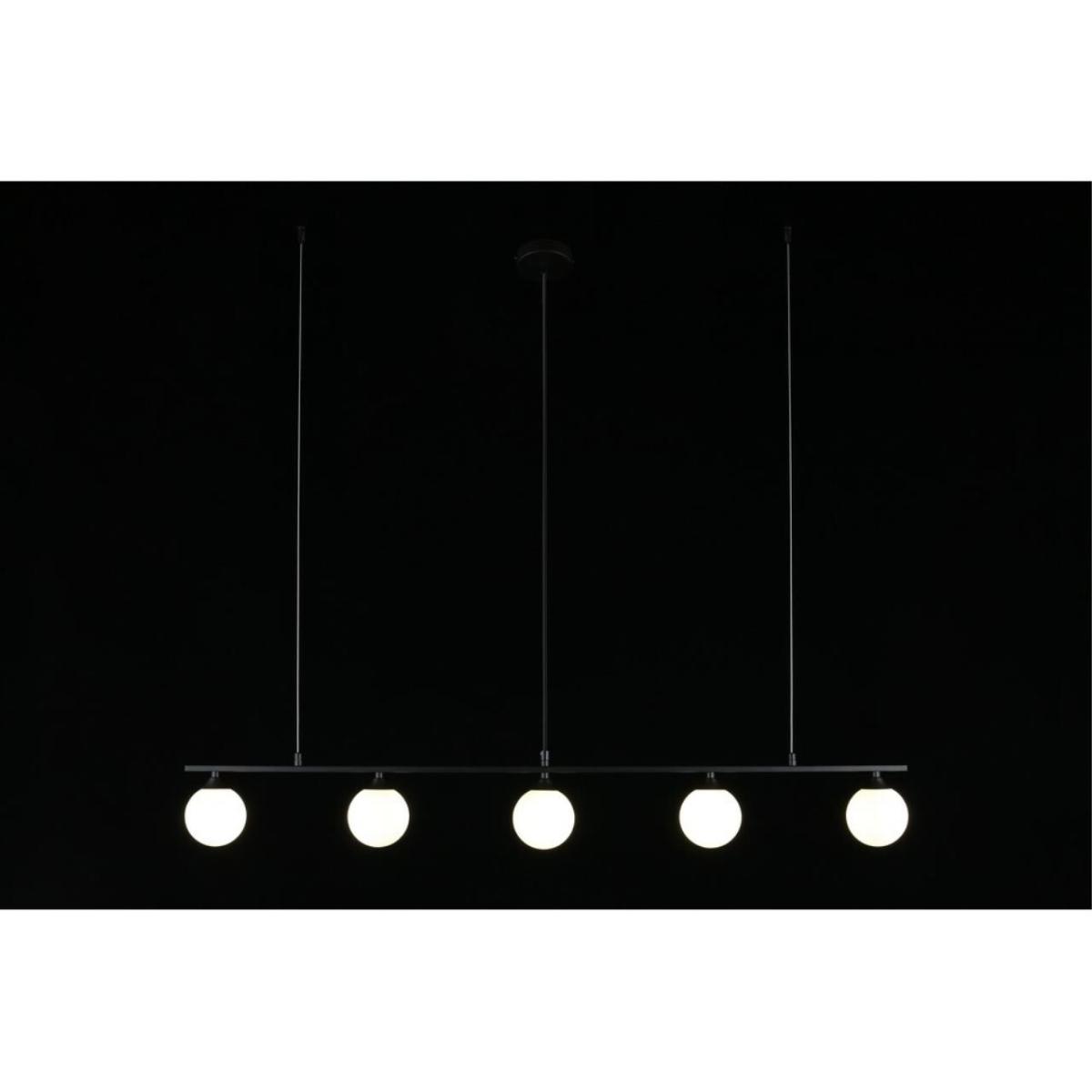Арматура из прочного металла в черном цвете контрастирует со светлыми шарами и визуально собирает композицию. Плафоны из стекла легко протереть, поверхность гладкая. Цоколь G9, используются пять светодиодных ламп. Расположение на потолок, тип крепления планка. Направление света вниз помогает выполнить локальную подсветку зоны дивана или стола, при этом общий поток 1375 лм поддерживает базовый свет. Стиль модерн читается сразу, лаконично.