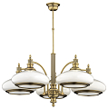 Арматура из латуни с благородным бронзовым колером выглядит солидно и визуально очень спокойно. Пять плафонов из бежевого стекла имеют овальную форму и направлены вниз, поэтому свет ложится аккуратными пятнами и помогает подчеркнуть фактуру стола или острова. Такой светильник органично поддержит интерьер с ретро настроением, деревянными поверхностями и текстилем теплых тонов.