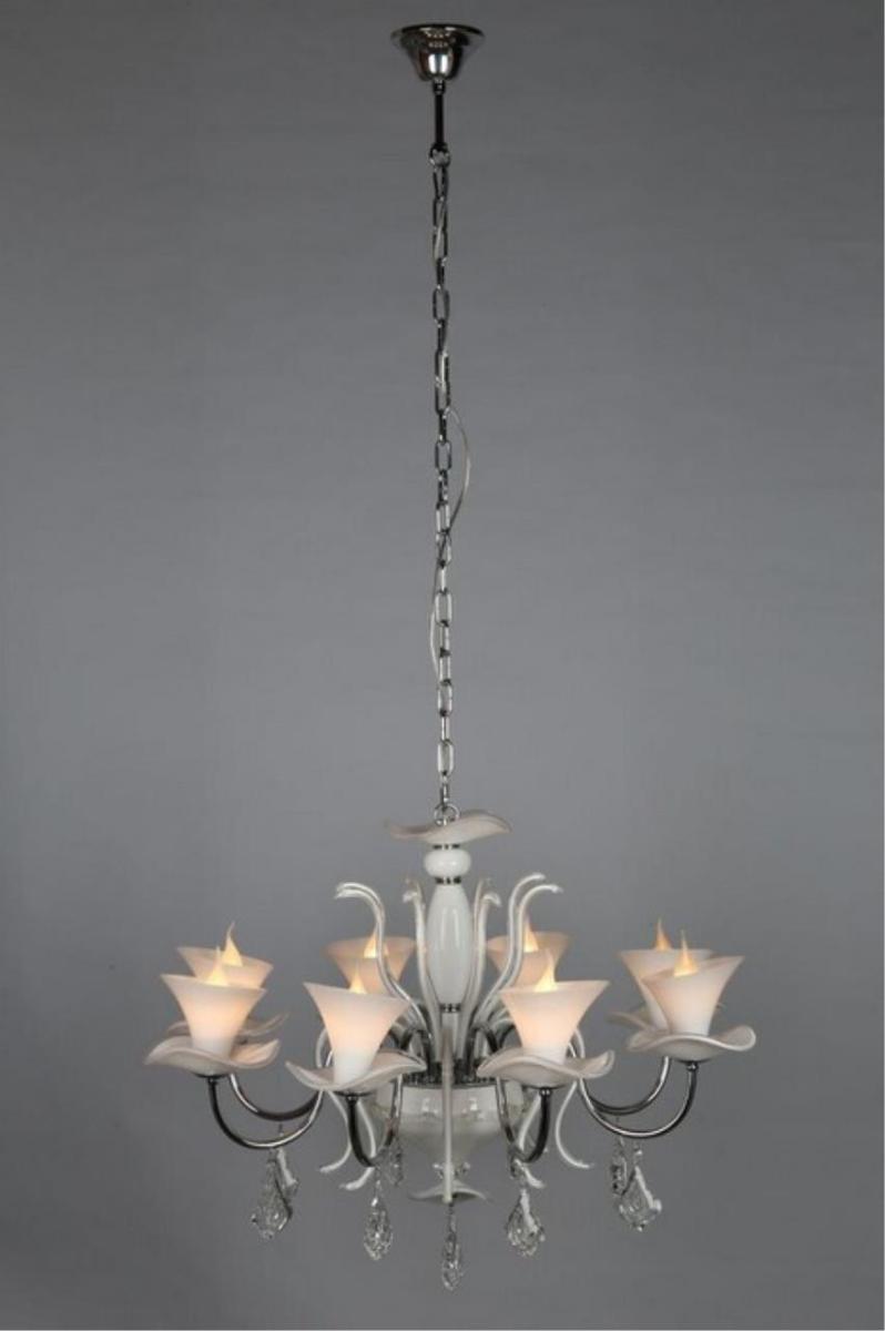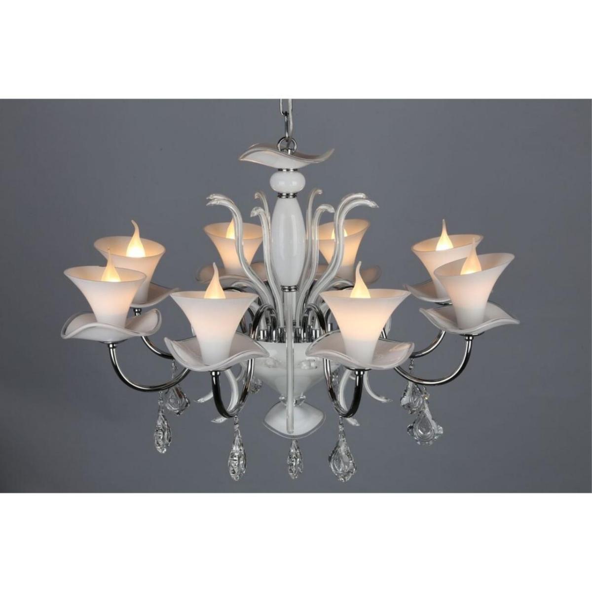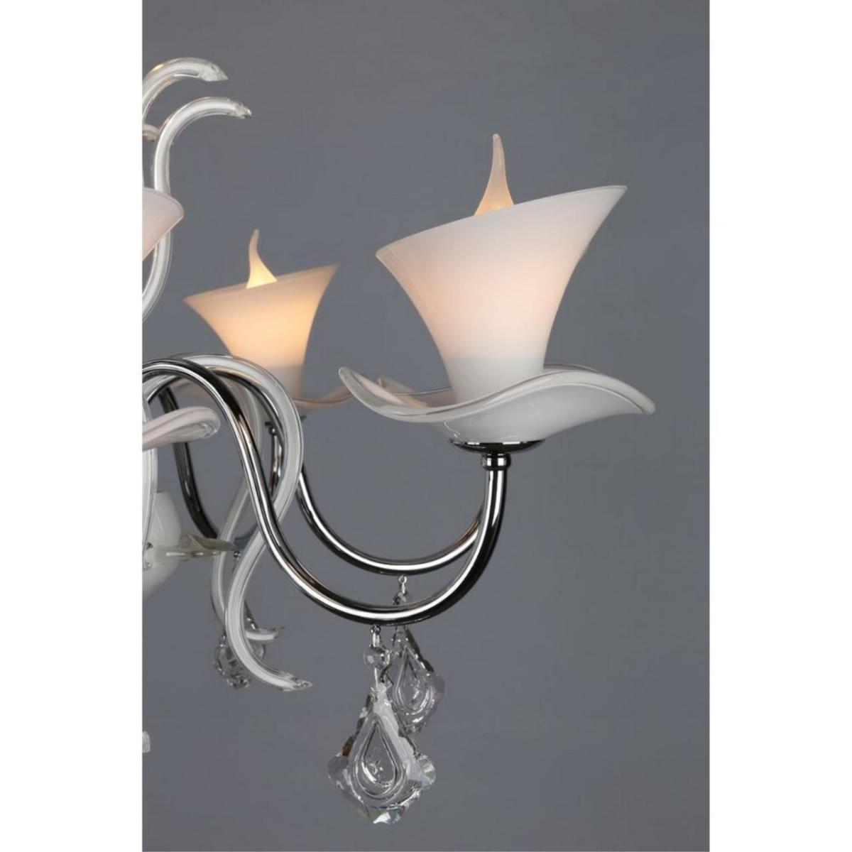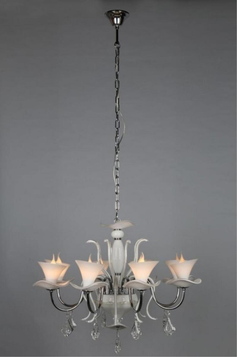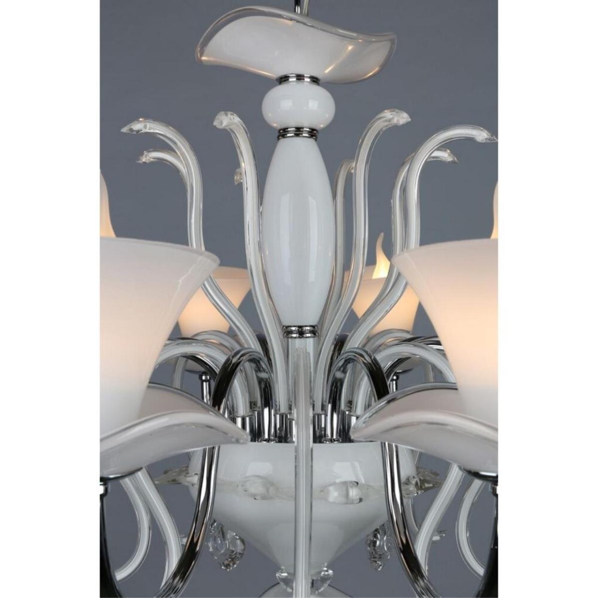 Подвесная люстра Omnilux OML-77403-08 из коллекции Oristano подчеркнет лёгкость прованса. Белые стеклянные плафоны, направленные вверх, и арматура в цвете хром создают светлый и аккуратный образ для гостиной.