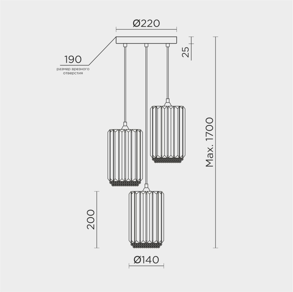 | Диаметр врезного отверстия, мм | 190 |
