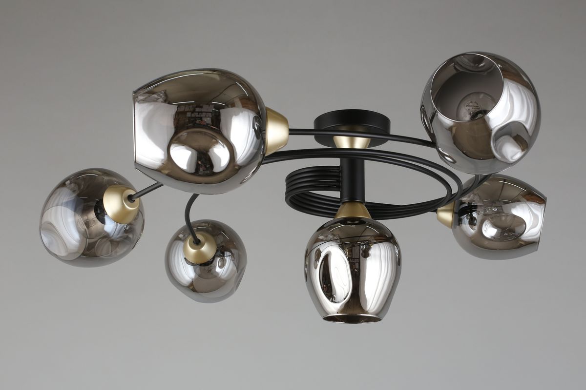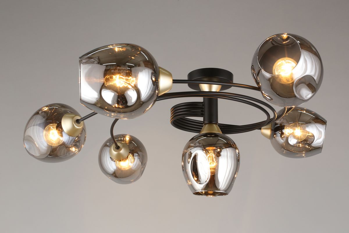 Потолочная люстра Aployt Flor APL.611.17.06 создаёт выразительный световой акцент в гостиной. Прозрачные овальные плафоны и черная металлическая арматура задают чистую эстетику лофта, при этом свет мягко расходится по комнате.