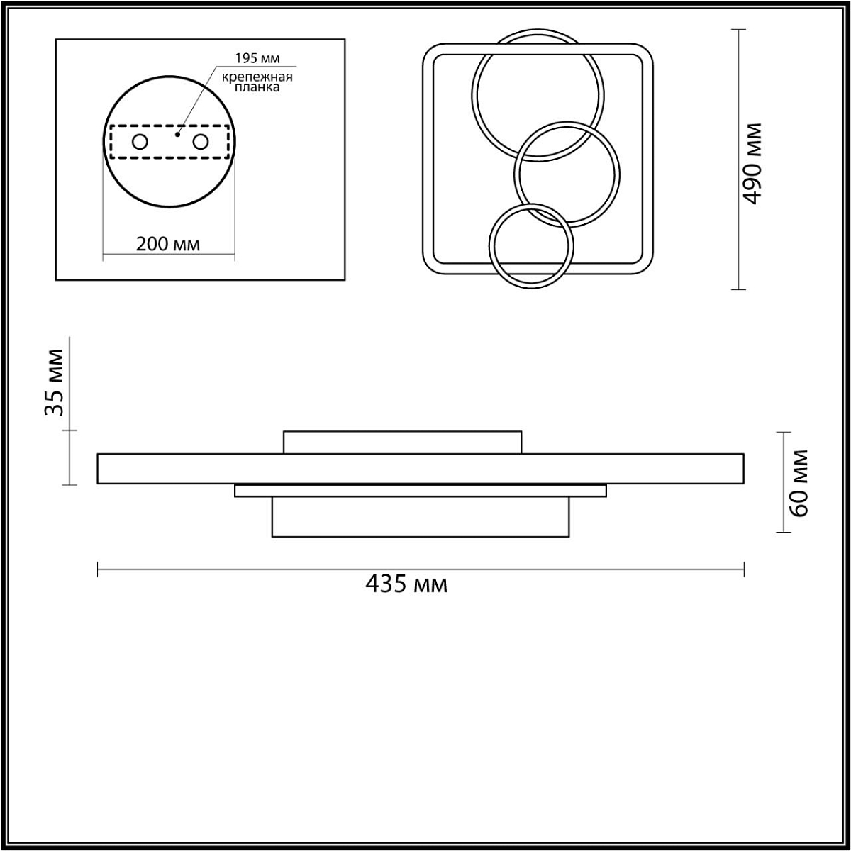 Металлический плафон в черном цвете подчеркивает графичность формы, а арматура с деликатными разноцветными акцентами добавляет живости без лишней броскости. Стиль хай-тек читается в деталях и в общей чистоте силуэта. Встроенный светодиодный модуль на 71 Вт входит в комплект, работает от стандартной сети 220 В и формирует световой поток 4686 лм, достаточный для комнаты до 18 м². Степень защиты IP20, крепление на планку, монтаж на потолок — практично и аккуратно.