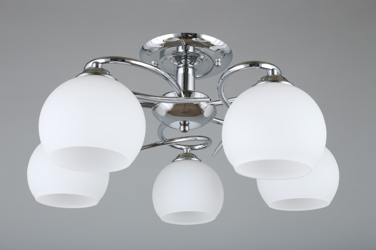 Светотехника простая и понятная: 5 ламп накаливания с цоколем E27 по 60 Вт, суммарная мощность до 300 Вт. Этого достаточно для комнаты площадью до 15 м². Питание от сети 220 В. Степень защиты IP20 подходит для сухих жилых помещений, не для ванных и зон с высокой влажностью.