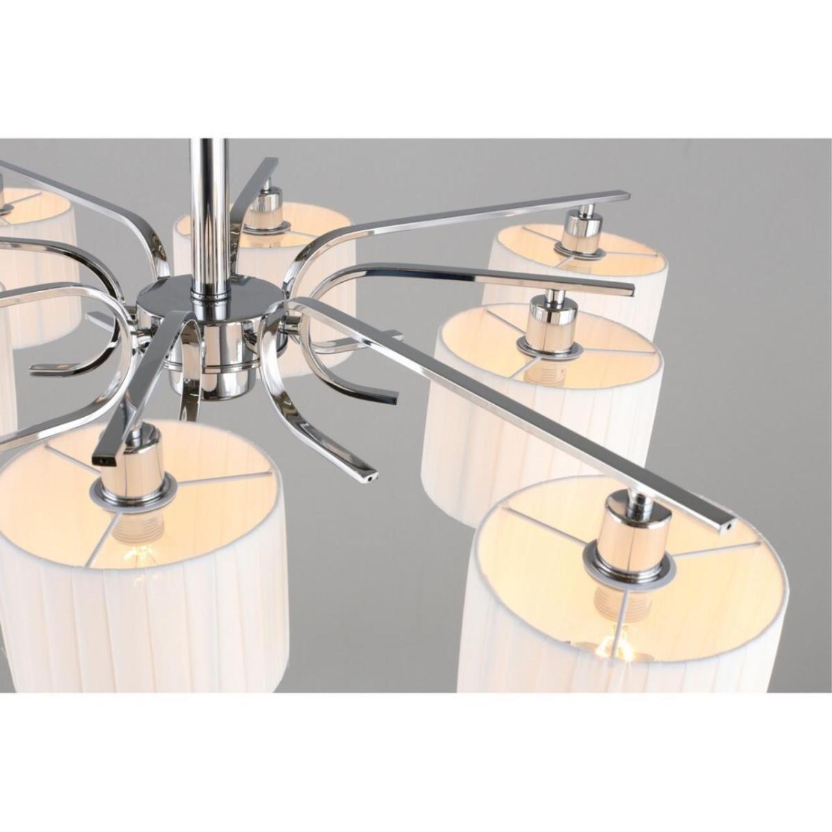 Потолочная люстра Omnilux Neviano OML-34207-08 создана для тех, кто ценит спокойный современный стиль и аккуратное освещение без лишней вычурности. В коллекции Neviano бренд Omnilux показывает грамотный баланс формы и функции: цилиндрические белые тканевые плафоны направлены вниз, металл арматуры в оттенке хром добавляет легкий блеск и поддерживает атмосферу чистоты в интерьере.