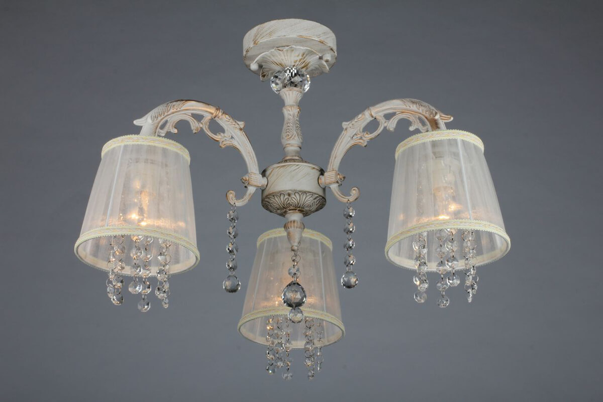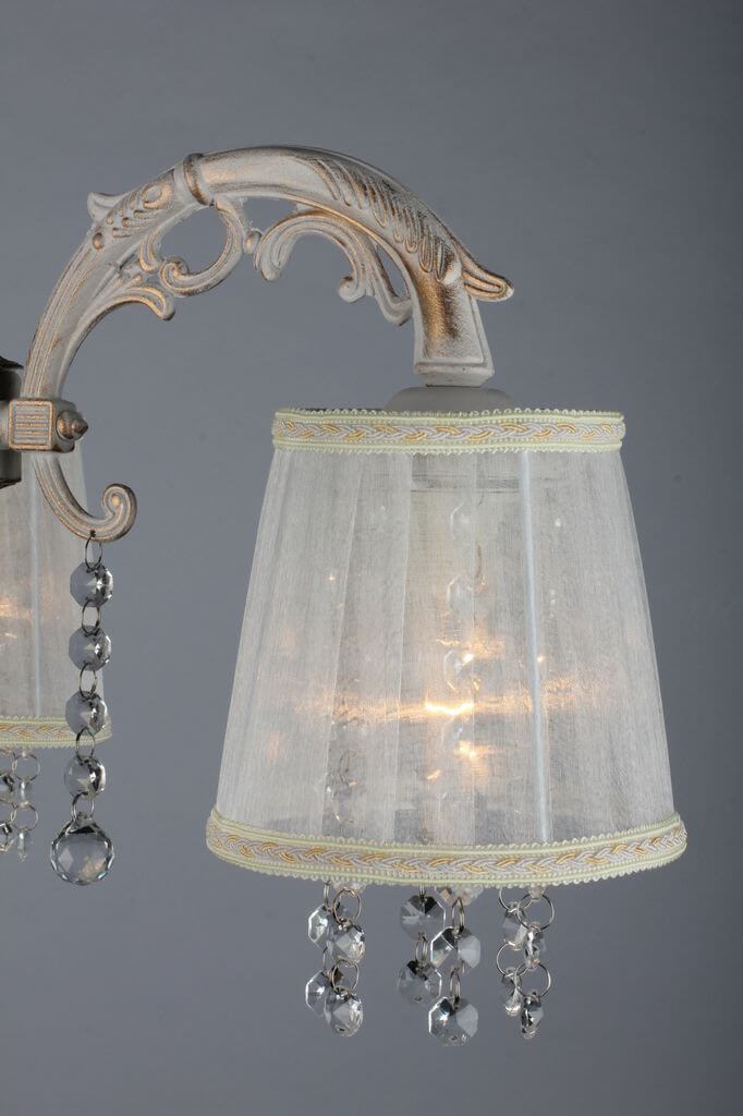Люстра относится к классическому стилю и подходит для размещения на потолке, включая натяжные конструкции. Материалы и нейтральная белая гамма помогают аккуратно вписать модель в интерьеры с текстильными элементами и светлой отделкой.