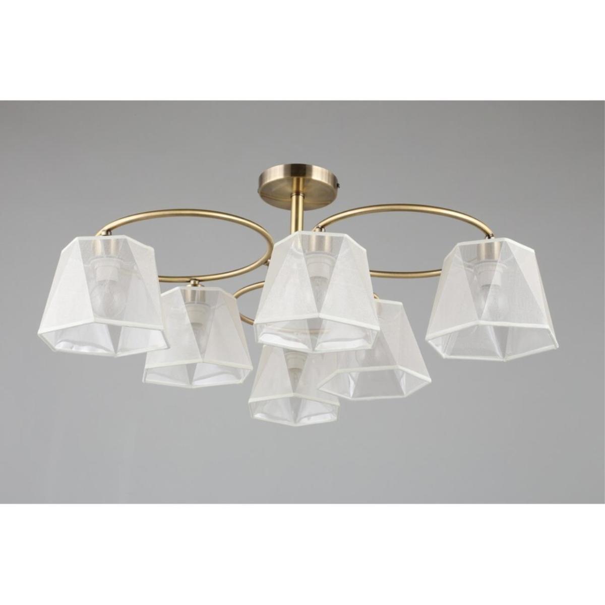 Потолочная люстра Omnilux Rapallo OML-65017-06 создана для уютной гостиной в стиле модерн. Шесть конусных абажуров из белой ткани направлены вниз, свет мягкий и комфортный для глаз. Бронзовая арматура добавляет тепла и благородства образу, а лаконичная штанга держит акцент на форме и свете.