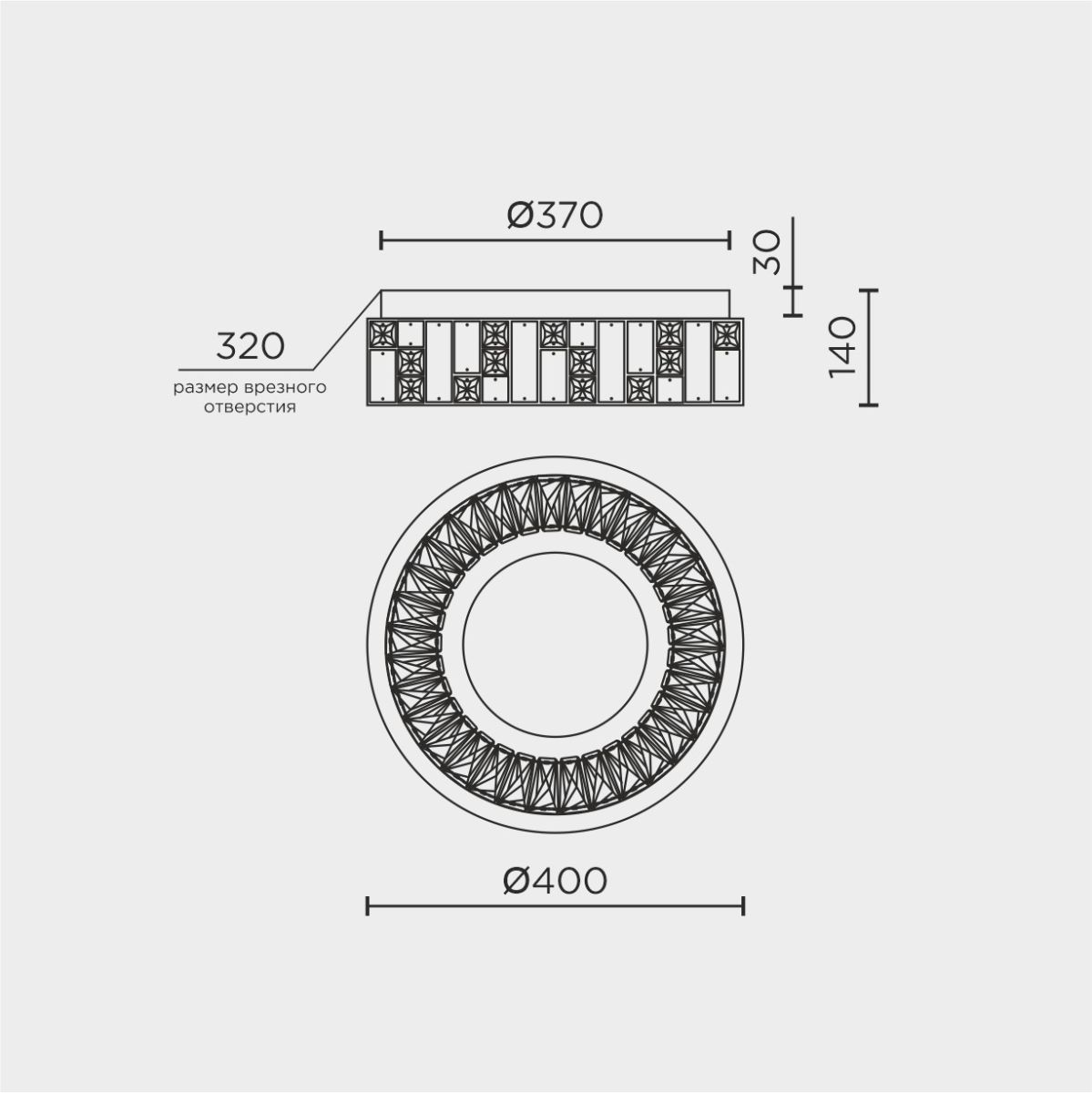 Диаметр врезного отверстия, мм 320